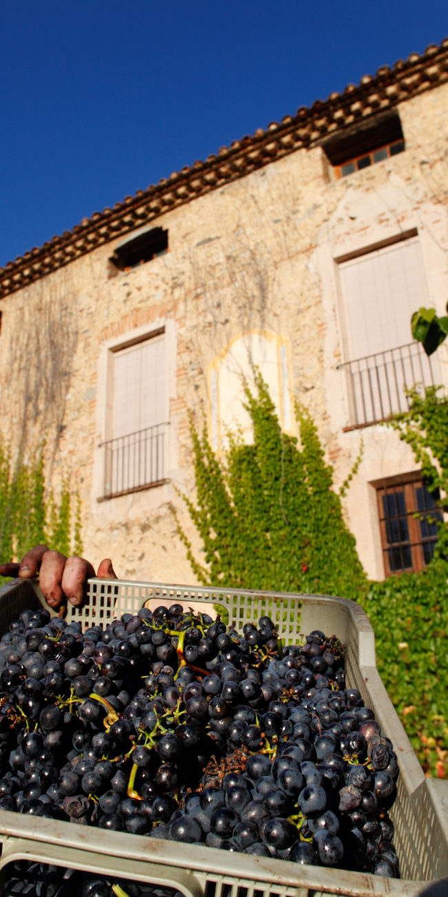 Uvas de nuestros propios viñedos, vendimiadas manualmente en cajas de 10 a 15kg. Las bayas son sele